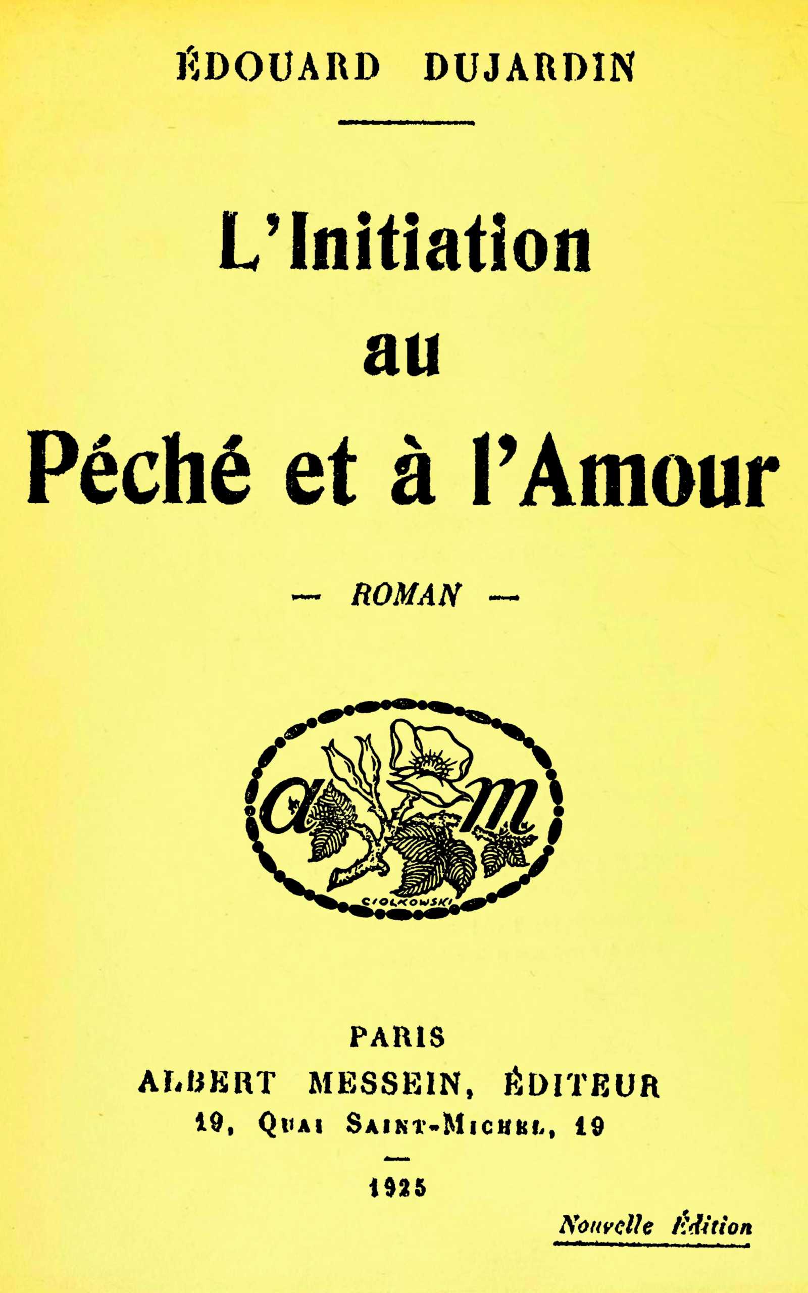 Plutôt que l’idée pseudo-chrétienne, je trouvé intéressant, à un quart de siècle d’intervalle, d’y reconnaître — particulièrement dans la première partie — l’idée freudienne du complexe d’Œdipe. On l’apercevrait déjà dans la Future Démence, l’un des contes de mon premier livre, les Hantises ; une trace en apparaît également dans la scène principale du second acte d’Antonia ; mais les soixante-quatre premières pages de l’Initiation au péché et à l’amour en sont le développement complet absolument caractérisé. Or, qu’on se rappelle les dates : les Hantises, 1886 ; Antonia, 1891 ; l’Initiation, 1898 ; et qu’on se rappelle, d’autre part, que les premiers travaux de Freud sont de 1893-1895, qu’aucun de ses ouvrages n’avait attiré l’attention jusqu’en 1900, et que rien n’en a guère été connu en France jusqu’en 1908 (article du journal la Neurologie)… Il est vrai que, si Édouard Dujardin a fait du freudisme avant Freud dès 1886 et 1891 et a publié un roman freudien en 1898, il serait injuste d’oublier qu’un certain Sophocle a écrit une tragédie non moins freudienne il y a une couple de millénaires.