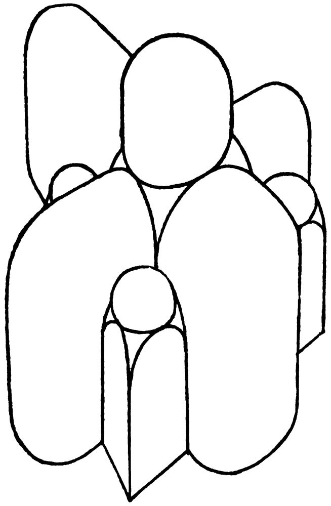 A typical church of the Italian mid-Renaissance with one large and four smaller domes. This diagram and those on p. 19 represent not the exterior of the building but the interior space, its walls and ceilings removed, and regarded from outside as a solid, on the same principle as that which governs the design of the celestial globe.
