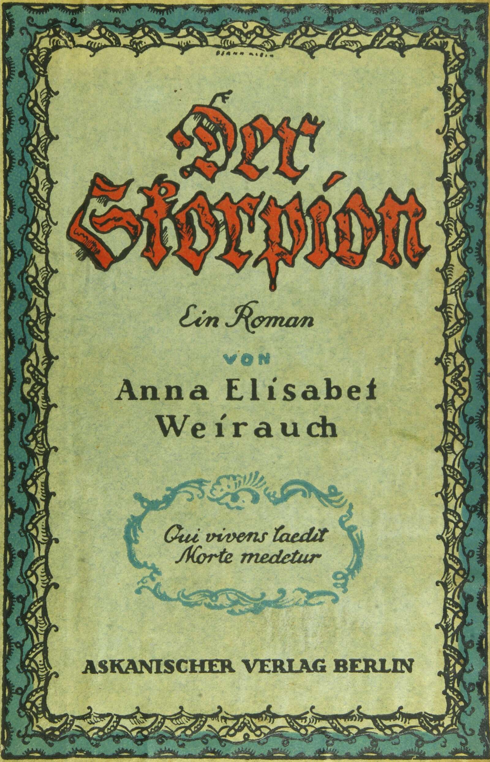 „Der Skorpion“ behandelt mit Unerschrockenheit und Klarheit ein Thema, welches selten, vielleicht nie zum Gegenstand eines Romans gemacht worden ist: Das Problem der gleichgeschlechtlichen Liebe.