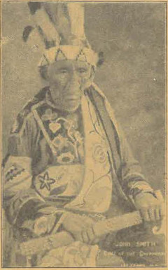 127-vuotias vielä elävä intiaanipäällikkö John Smith heimopuvussaan.