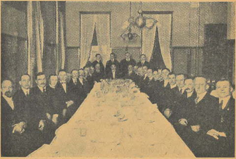 Illalliset Hancockissa. Mukana kaikki seutukunnan johtavat henkiset voimat, kuten Suomi-opiston opettajia, lääkäreitä, pappeja, liikemiehiä y.m.