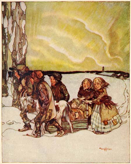 ‘Bring Golden Horn here, so we can get warm too,’ cried the little maids on the sled.