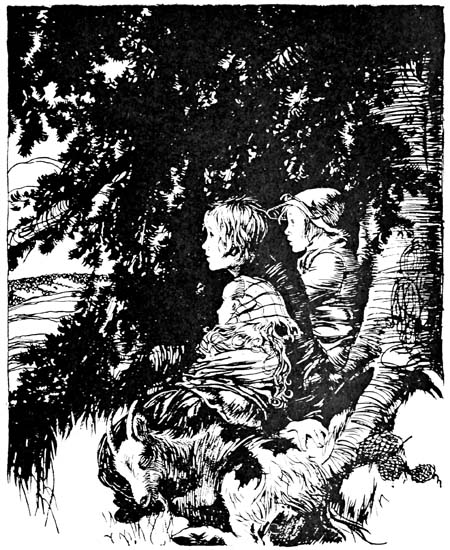 They did not cry because they were so cold that nose and hands were as blue as cornflowers and toes so frozen that they could not stand on their feet. No, they wailed and wept from hunger. They would have eaten the hardest crust of bread or the tiniest potato with gusto. But the road through the Great Woods was twelve miles long, and they had not been within the door of a cottage all day long. They stayed away from houses first for fear they would be held and sent to the poor-house, and later of necessity, because there was not even the poorest kind of hut in all the woods.
