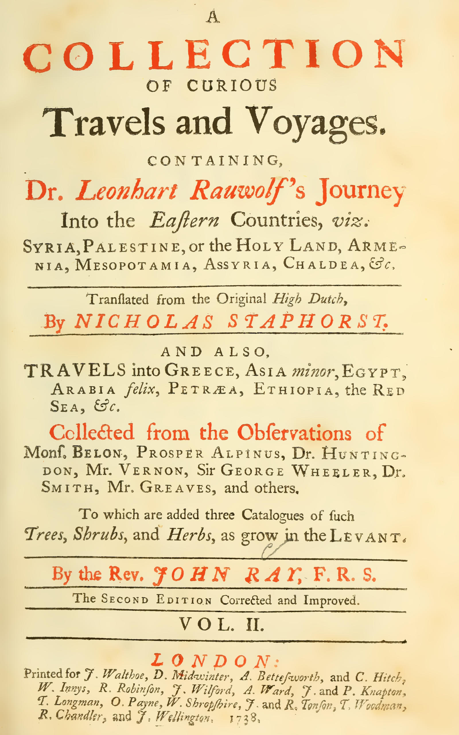 Printed for J. Walthoe, D. Midwinter, A. Bettesworth, and C. Hitch, W. Innys, R. Robinson, J. Wilford, A. Ward, J. and P. Knapton, T. Longman, O. Payne, W. Shropshire, J. and R. Tonson, T. Woodman, R. Chandler, and J. Wellington. 1738.