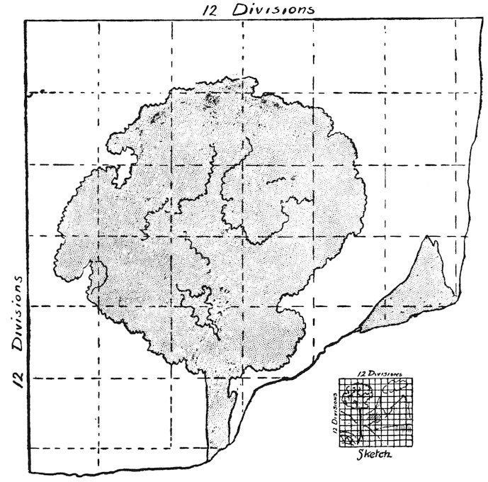 The sketch should, of course, be in absolute proportion to the cloth. If it is square, any square is right. If, for instance, the cloth were 30 feet by 20 feet, the sketch should be 30 inches by 20 inches, or 15 inches by 10 inches, as most convenient.