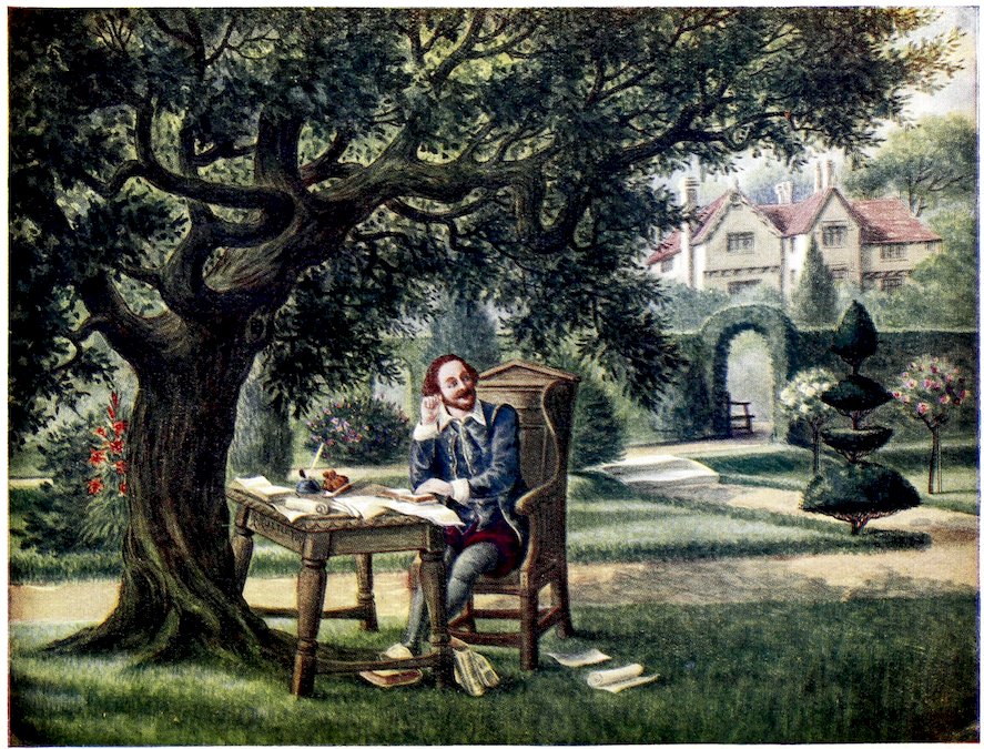 Shakespeare sitting under his favourite Mulberry Tree in the Garden of New Place.