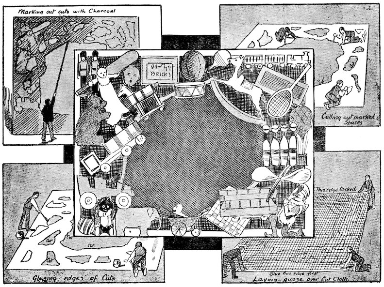 The canvas is joined together in a special way, so that the joins may not be seen and a perfectly flat surface may be presented. The simplest way to learn this process is to take two sheets of paper and set to work in the following way:—