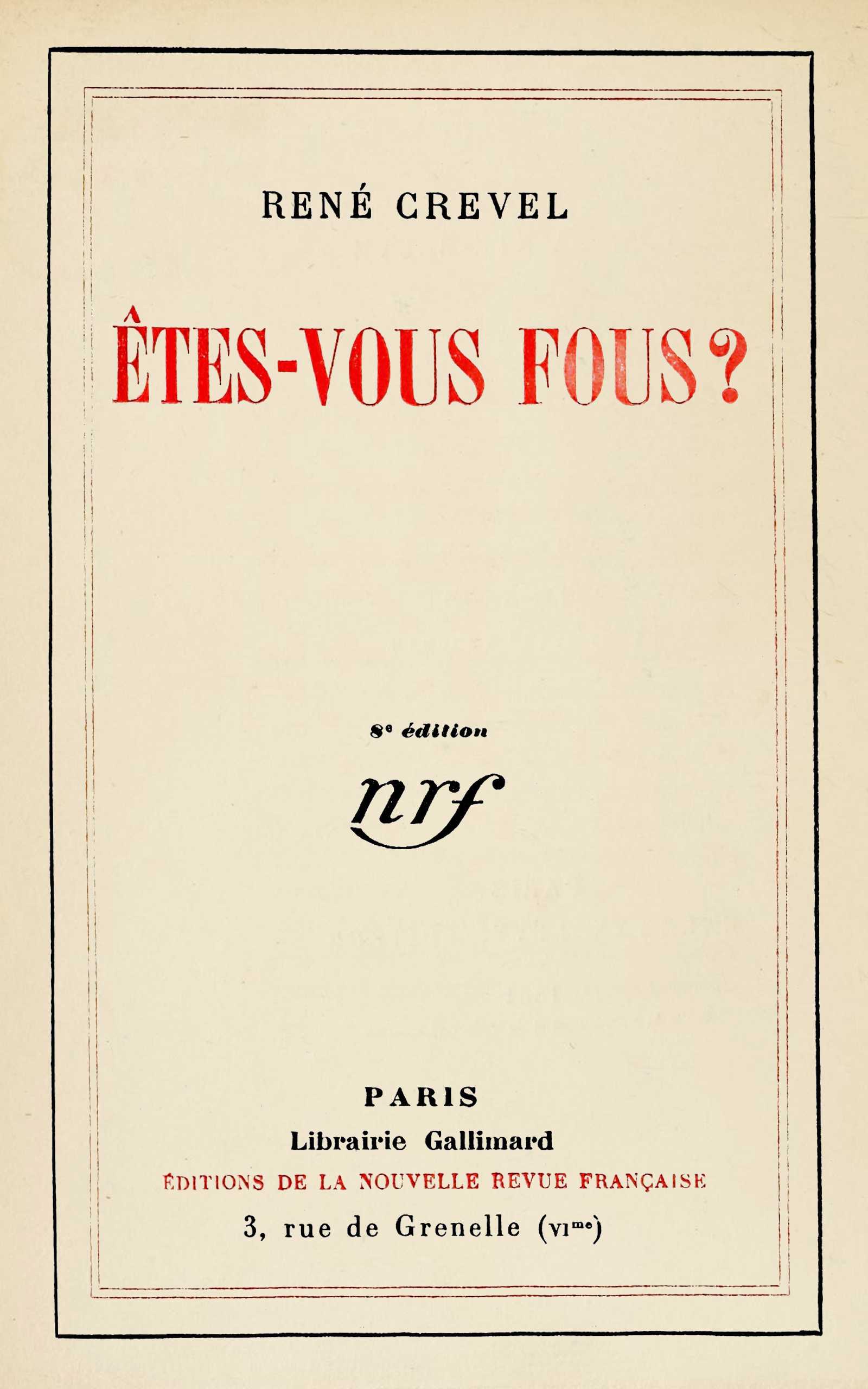 ÉDITIONS DE LA NOUVELLE REVUE FRANÇAISE