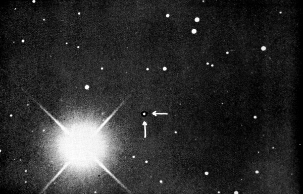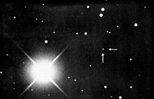 The two photographs were taken at the Lowell Observatory on the nights of March 2 and 5, 1930. The object indicated by arrows was seen to have moved considerably in the interval, and this proved that it was of planetary character.