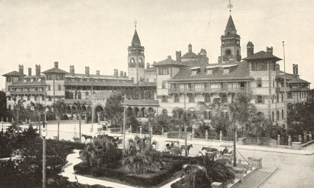 After 1865, a new era sprang up for St. Augustine; railroad communication was opened to Tocoi, on the St. John’s, and, later on, to Jacksonville. Winter visitors began to come in large numbers, and hotels on a large scale were built. Finally, Mr. H. M. Flagler became interested in the old city, and built the famous and most beautiful Ponce de Leon, the Alcazar, and the Cordova, with many other handsome buildings. He purchased and improved the railroad, filled in the marshes of the St. Sebastian, and erected a new city alongside of the old. The population has been doubled, and its attractions have greatly increased. A railway system has been established, taking in the whole east coast of Florida as far down as Miami, with connecting lines of steamers to Key West, Havana and Nassau. Few towns can now boast of more attractive residences, and none of such magnificent hotels for the solace of the traveler. After a varied existence of over three centuries, the ancient city has put on a new life of elegance and prosperity.