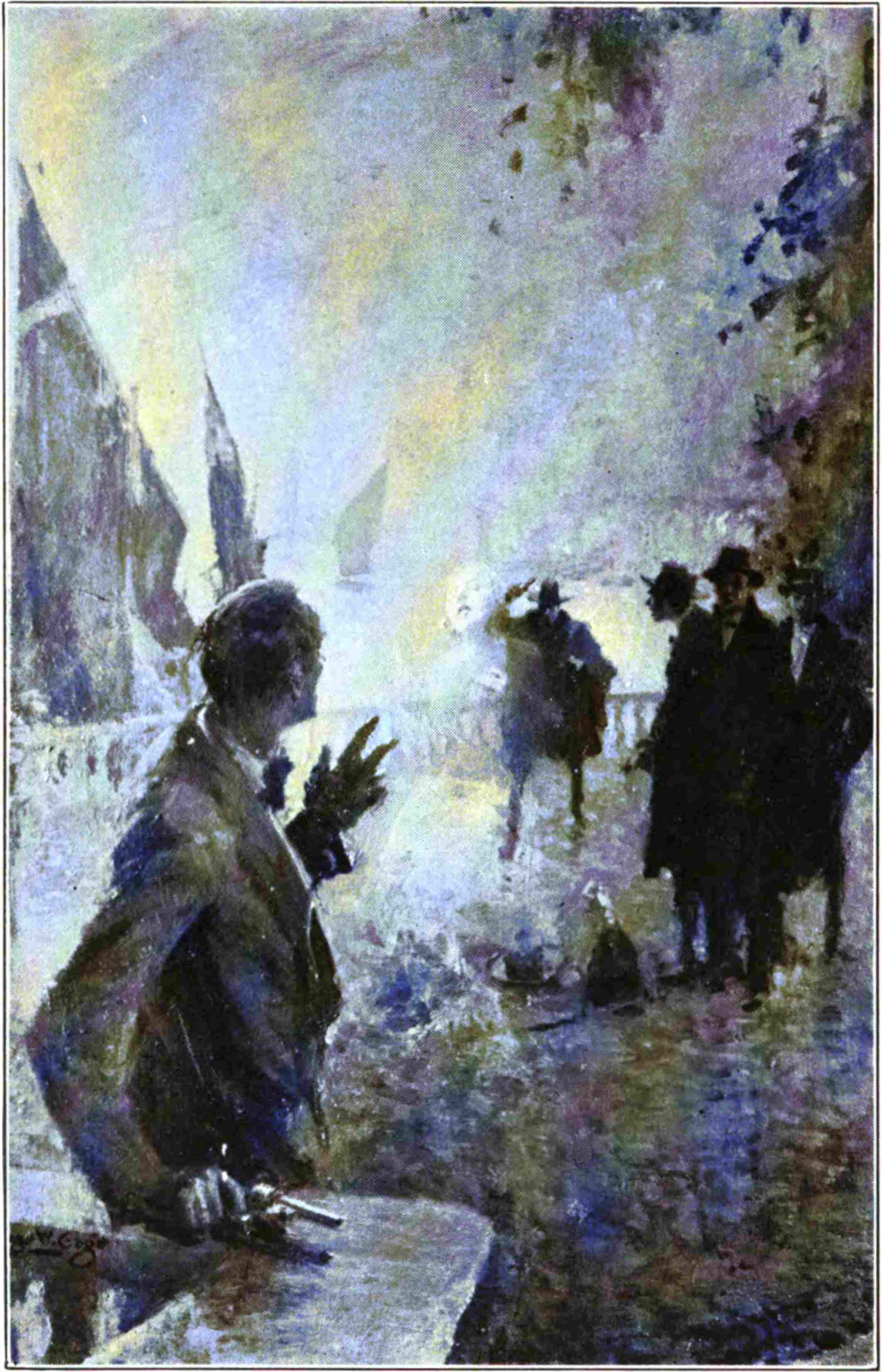 I left the place more cast down than when I arrived. My curious meeting with a stranger who seemed to be stirred by an emotion singularly akin to my own, unnerved me to a degree which at first I failed to realize; but as I was descending the hill which led me back to the Tongues valley, I thought I recognized in front of me the dark form of the man whose voice I had heard near me, and I started to run in order to overtake him.