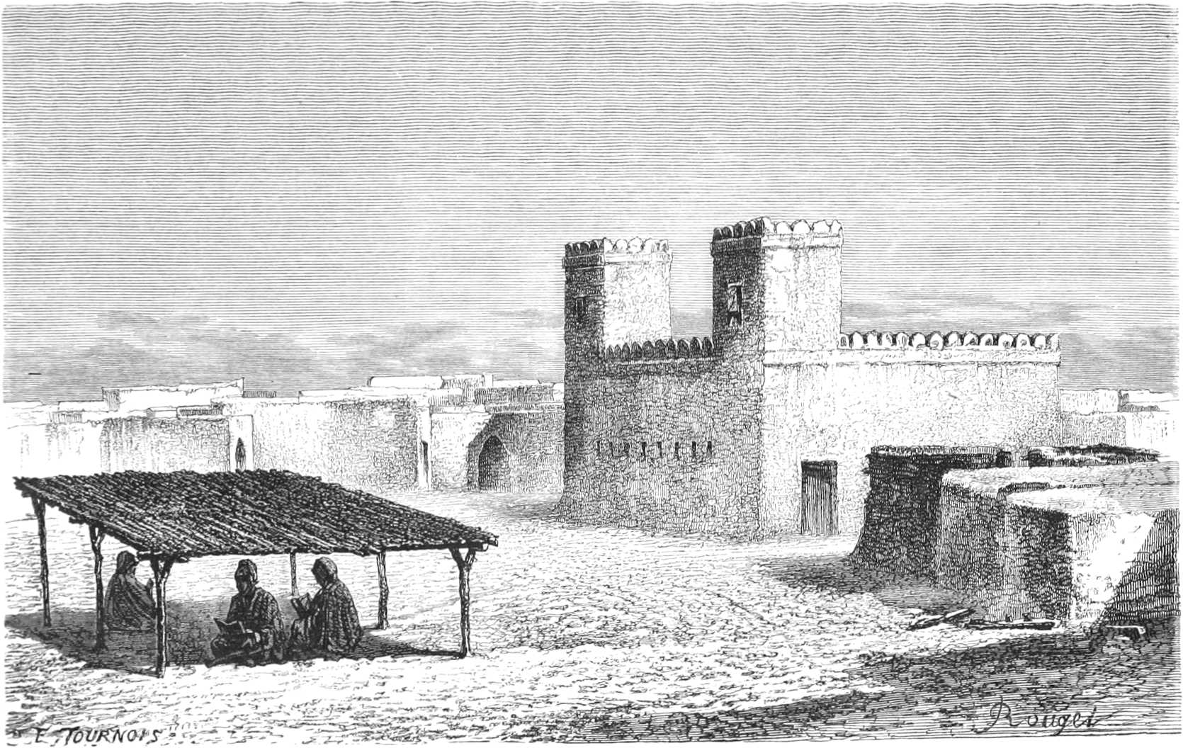 « Nous avons enfin demandé à Sidi Mohammed s’il avait eu connaissance, à Tombouctou, des tentatives du gouvernement général de l’Algérie, par l’intermédiaire du cheik Ikhenoukhen, pour entrer en relations commerciales avec le Soudan. Sidi Mohammed a répondu que non, et que cela n’a rien d’étonnant, parce que Ikhenoukhen est très-loin de chez eux et qu’il est en guerre depuis deux ans avec les Touaregs Deugguemachil, qui le séparent du pays de Tombouctou. Les gens de Tombouctou se figurent que nous avons dessein de conquérir le Touat. Nous les avons détrompés à cet égard, et nous les avons engagés à expédier des envoyés en Algérie,[11] en leur racontant la bonne réception qu’on y a faite à Othman et aux Touaregs de sa suite.