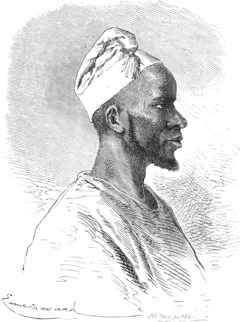 Le 10 juillet nous étions à Gorée, le 12 à Saint-Louis, et je fus tout de suite détaché à terre pour faire les études nécessaires à l’entreprise d’un tel voyage. J’avais déjà servi cinq ans au Sénégal et deux ans dans la station navale du littoral. Il était peu de points de la côte que je ne connusse. Un séjour de neuf mois au milieu des noirs du Haut-Fleuve à Makhana[3], et un pénible voyage d’exploration à l’oasis de Tagant, chez les maures Douaïch, m’avaient préparé. Je connaissais le caractère des noirs et des Maures, la manière de se conduire avec eux ; mais bien que possédant suffisamment l’histoire des voyages en Afrique, il me fallait relire Raffenel, Caillé, Mongo Park et même Barth, quoiqu’il ne parle pas des mêmes régions.