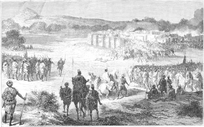 « Le cheick de Tombouctou, comprenant que les hostilités n’en resteraient pas là, avec un homme tel que El Hadj Omar, rassembla une armée de Touaregs et de Maures, et vint camper à une demi-journée de la ville. El Hadj Omar ne tarda pas, en effet, à se mettre en marche, avec une armée évaluée à trente mille hommes. A son approche, les Touaregs et les Maures abandonnent leur camp ; l’armée ennemie l’envahit et se livre au pillage.