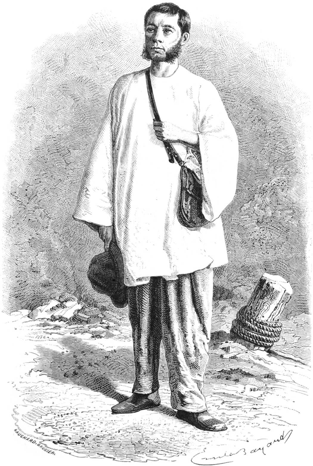 M. Quintin, chirurgien de deuxième classe de la marine, qui[4] avait déjà fait un séjour de trois ans au Sénégal, y retournait en même temps que moi et demanda à m’accompagner. Tout d’abord son air délicat, sa petite taille et sa faiblesse apparente me portèrent à l’en dissuader ; mais sur son insistance j’appuyai sa demande auprès du gouverneur, qui voulut bien donner une réponse favorable. J’étais loin de me douter alors que dans un corps frêle en apparence je trouverais l’énergie d’une grande nature, le courage de tous les dangers et une rectitude de vue qui nous ont été bien souvent utiles dans les péripéties de notre pénible voyage.