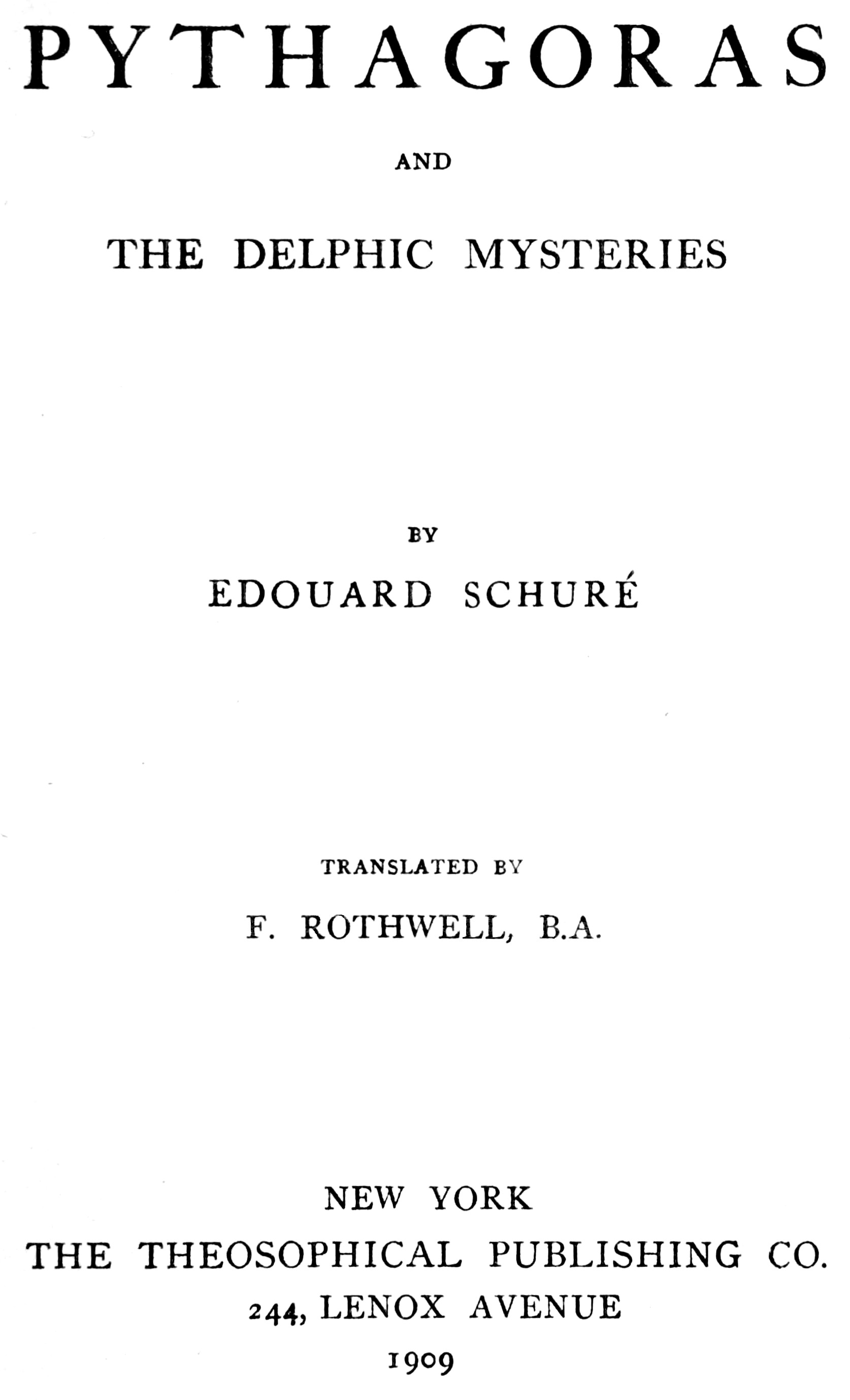 Pythagoras. By Edouard Schuré; cloth, $1.50.