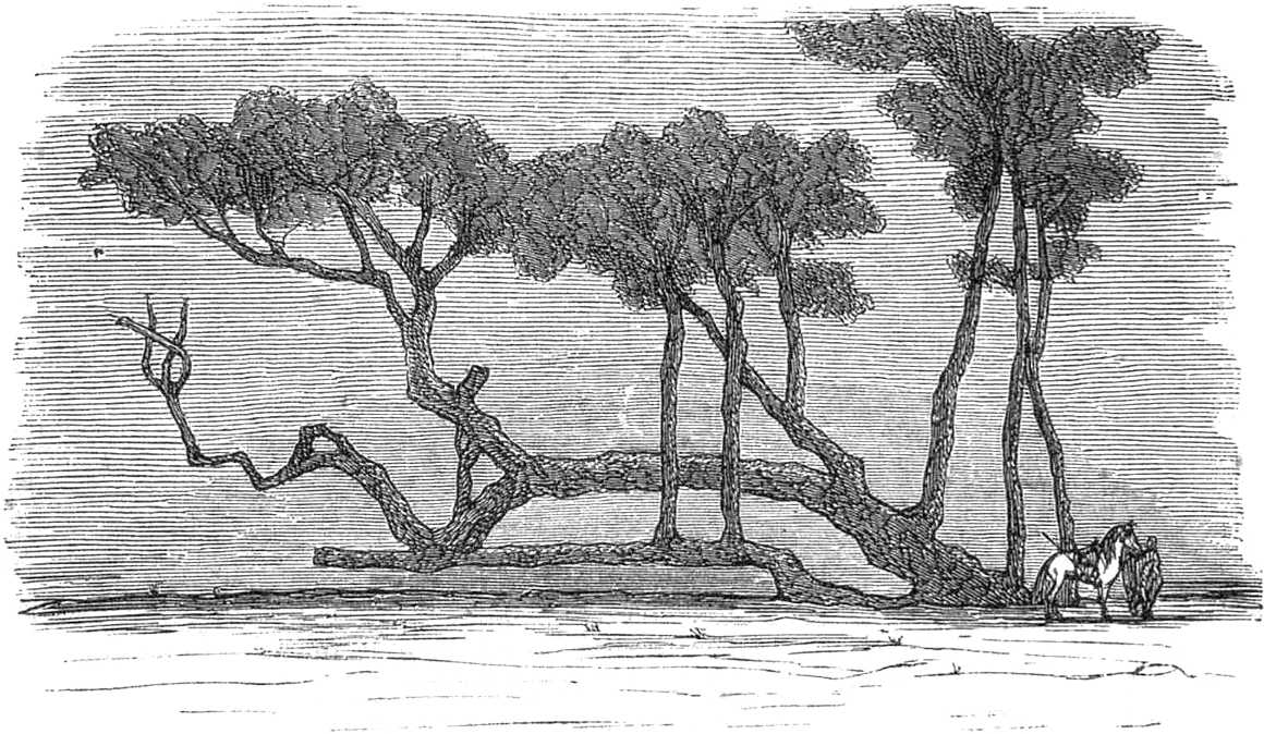 [v]Les six premiers mois de l’année 1860 furent employés à explorer le Sahara tunisien : le Djérîd, le Nefzâoua jusqu’à Gâbès sur la petite Syrte. Protégé par des amer du Bey Sîdi-Sâdoq, obtenus par la bienveillante entremise de M. F. de Lesseps et de M. Léon Roches, consul général de France à Tunis, je fus toléré partout ; mais je dois à la vérité de constater les préventions et la fierté blessante dont les sujets algériens sont victimes dans le Sud de la Tunisie.