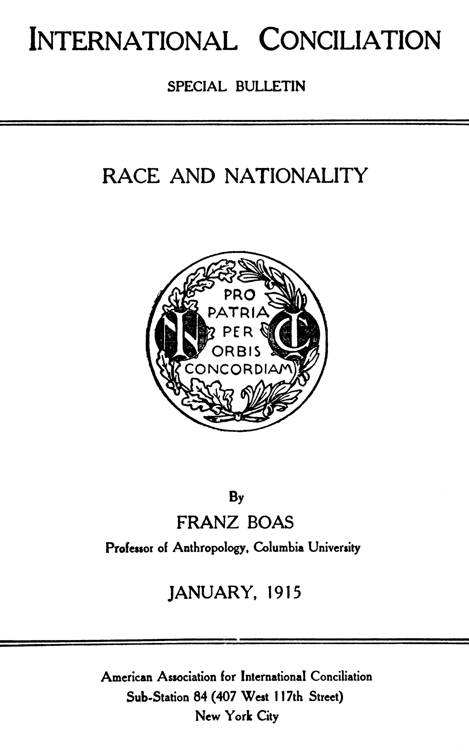 The struggle that is now devastating Europe has been described as an unavoidable war of races, as an outcome of the innate hostility between Teutonic, Slav, and Latin peoples, that can never be overcome by argument and reason, because it is due to deep-seated “racial instinct.” If this were so, we might despair of the future of mankind; for beyond this conflict would arise others without end, as wider and closer international intercourse develops and brings more emphatically into consciousness racial differences like those between Latin-American and Anglo-American, East Indian and European, Mongol or Malay and European. If this view were correct, the so-called “racial instinct” would perpetuate wars of extermination until one race alone survived.