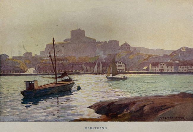 Thanks to her long indented coast-line, tideless seas, and a superabundance of large inland lakes, on the other hand, Sweden can offer ideal conditions during the summer months to those who like an open-air life and are not in need of the usual conventional amusements; and not only the Skärgård and the extensive Stockholm archipelago, but the coast of Bohuslän, stretching right up to the coast of Norway, provide ideal water playgrounds for those who are fond of swimming, boating, and yachting, the innumerable rocky islands surrounding the southern coast being perhaps unsurpassed for the opportunities which they offer in these respects. As sailing and motor boats can, moreover, easily be hired, and the air is magnificent, an extended stay during the summer months in this part of Sweden has much to recommend it, while there is always plenty of good and not too expensive accommodation[5] to be found at such seaside resorts as Marstrand, Särö, Lysekil, or Fiskebäckskil, if only the prospective visitor applies for it in seasonable time.