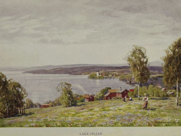 If Dalecarlia is therefore an ideal land for tourists during every season of the year, with its many beautiful excursions and fascinating peasant costumes and cottages, the quaintly picturesque customs of its people and the opportunities that it offers in winter for every kind of winter sports, it is also the home of industries which have long been famous in the history of Sweden. There is an old legend which relates that about 700 years ago a goat-herd, while tending his goats on a mountain in Dalecarlia south of Lake Siljan, noticed that one of his flock had suddenly become dyed red, and that the only plausible explanation that he could find of the phenomenon lay in the fact that the surrounding rock contained quantities of copper which had become oxidised by the atmosphere and converted into red ochre by the action of a forest fire.
