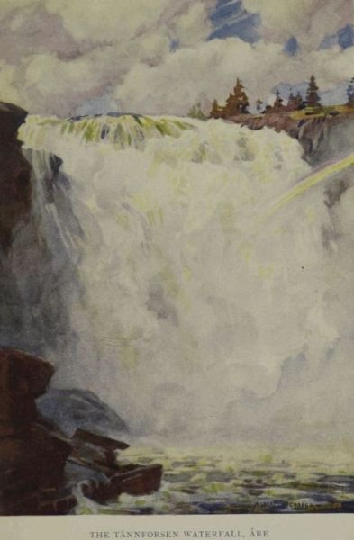 Åre combines the fascination of Swedish winter sports with the thrill peculiar to the Swiss; and while the surrounding country is almost as suitable for cross-country ski-ing as Dalecarlia, it possesses the additional advantage of enabling the winter sport enthusiast to practise almost every variant of ski-ing and winter game. At Storlien, Snasahögarna, and Merakar, there are gradients of every kind, the steepest of these rivalling those of Davos. Åre in certain respects recalls Swiss resorts. Like Davos, it is situated in a mountainous country with high mountain tops in the immediate vicinity. From the lake at the base of Mount Åreskutan (4600 feet) a funicular railway runs up 600 feet, and from this point a bobsleigh run three-quarters of a mile long, with curves as sharp as those of the Cresta, winds down to the hotels below. There are slopes here for every taste: rounded hills, steep slopes, and the famous Tännforsen waterfall, one of the finest in Europe, all within easy distance.