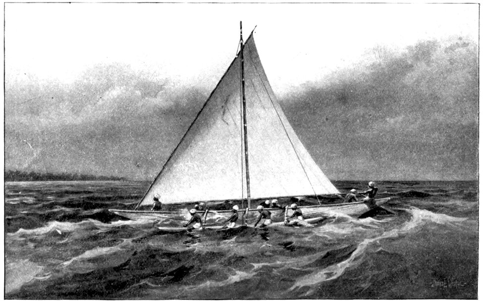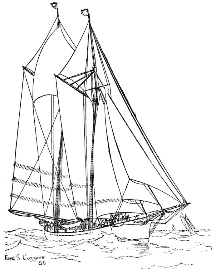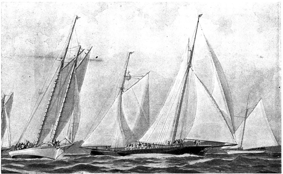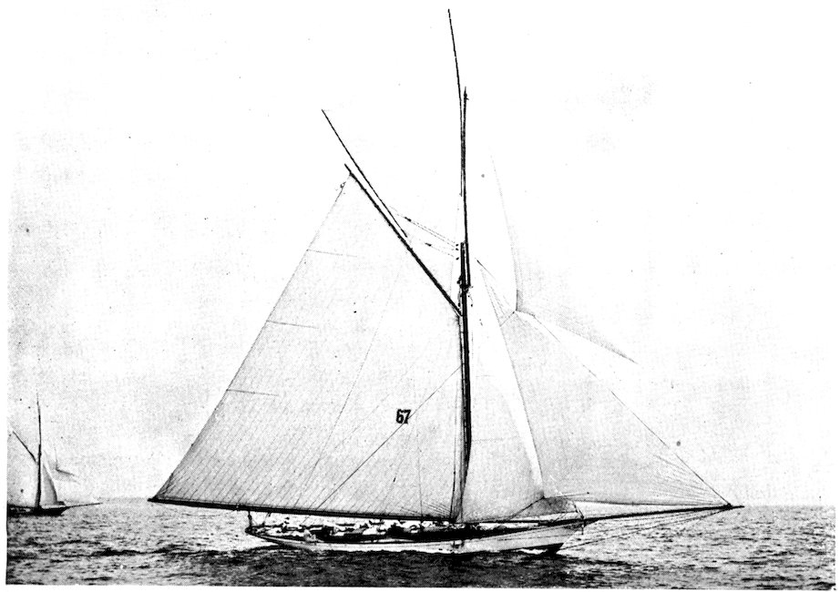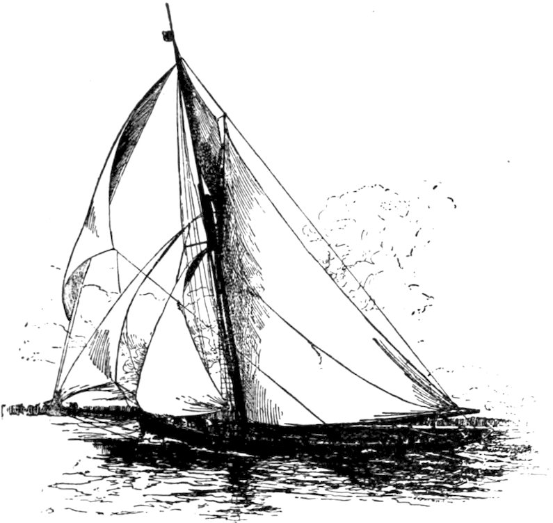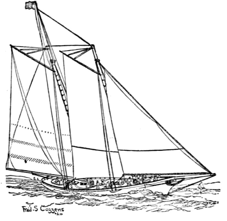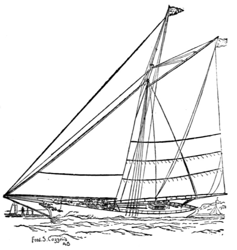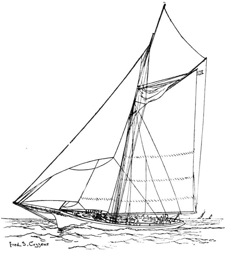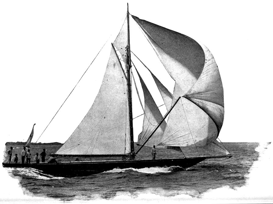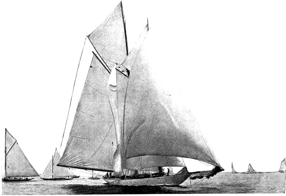The owner of a small racing yacht taking part in the squadron cruise of the New York Yacht Club, which sometimes extends as far as Bar Harbor, Me., should take care that he carries 293along with him a sufficient “sea kit” for all the emergencies of the voyage. Certain social functions at Newport, for instance, will render evening clothes necessary, if not indispensable, to any yachtsman desiring to participate in the social gayeties of the Cowes of America. A “claw-hammer” coat is my pet abomination, and personally I would never “hoodoo” a racing yacht with any such luxurious superfluity. So strong is my antipathy to this garment of civilization that my will contains a special clause forbidding my undertaker to attire me for the grave in a so-called dress suit, as is sometimes the custom in this country.