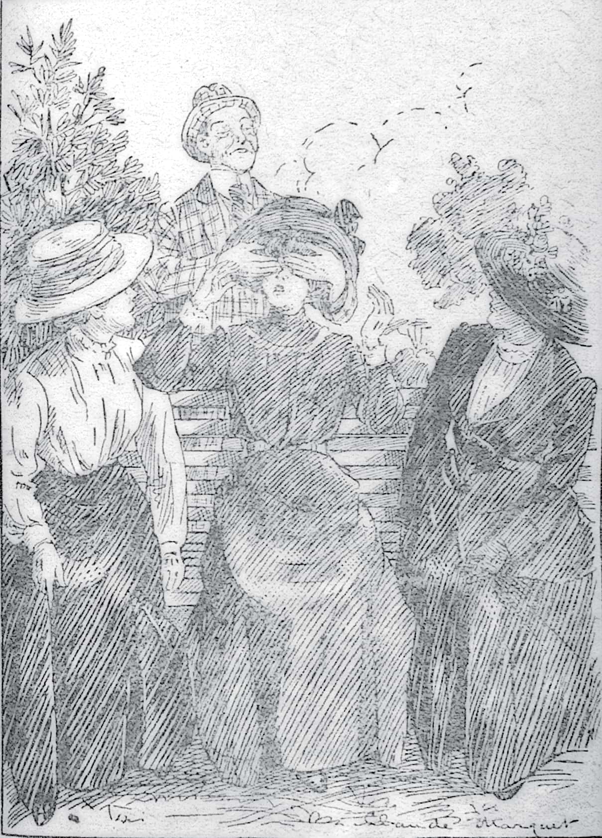 “Oh, well,” Polly said, fumbling with her gloves, and glancing round to see that no outsiders were listening, “when James goes home, Peter, perhaps he’ll be able to paint a picture of a donkey with its ears cocked, which he’ll call ‘The Bray of the Brother.’”