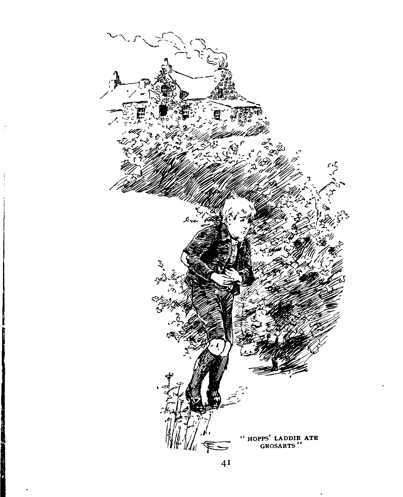 "Hopps' laddie ate grosarts (gooseberries) till they hed to sit up a' nicht wi' him, an' naethin' wud do but they maun hae the doctor, an' he writes 'immediately' on a slip o' paper.